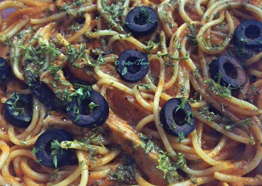 Al Dente Spaghetti pasta with chunks of Grilled chicken cooked in a red tomato based gravy. This dish had generous serving of black olives. The gravy had basil, parsley and parmesan cheese. I was eager to have spaghetti as I had been drooling over a spaghetti picture, clicked by a friend earlier that day!!